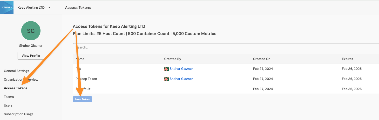 With this approach, Keep will pull alerts from SignalFx every time you refresh the console page.- SF token with read permissions - go to Settings -> Access Tokens -> New Token