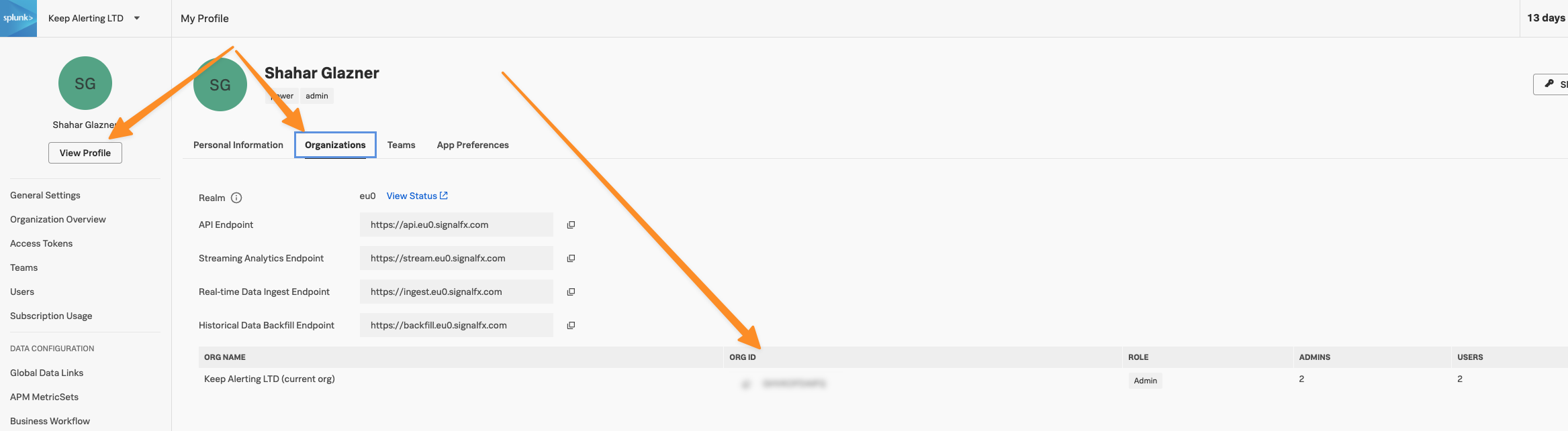 - org_id: SignalFX organization ID. Required for setup webhook. (required: False, sensitive: False)
